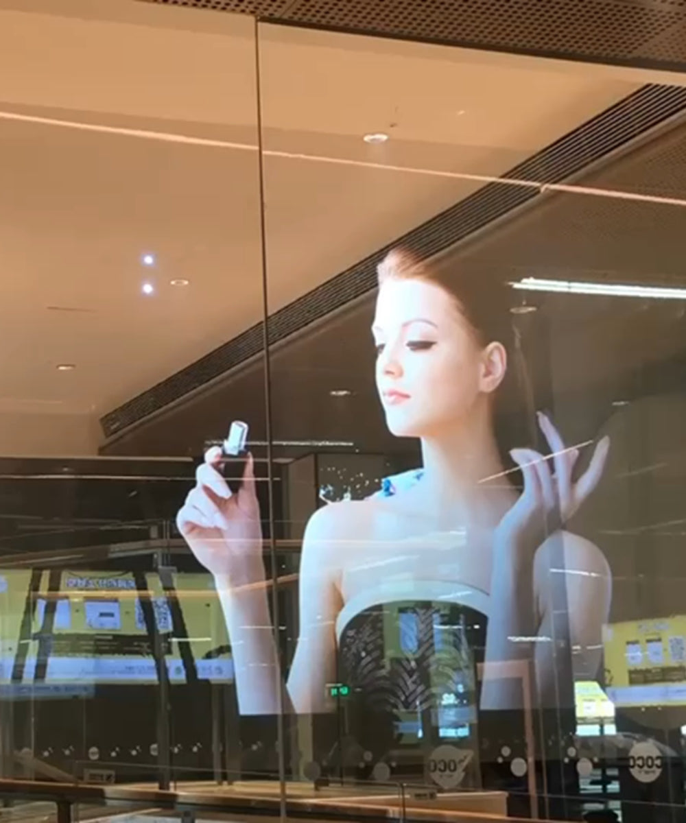 NanoAR Transparent Projection Display transforma cuaquier medio transparentes (vidrio, acrílico, etc.) en pantallas HD de alta resolución a todo color ideal para vallas publicitarias visualmente mejoradas, vitrinas comerciales, pantallas de vehículos, HUD, cines y mucho más.