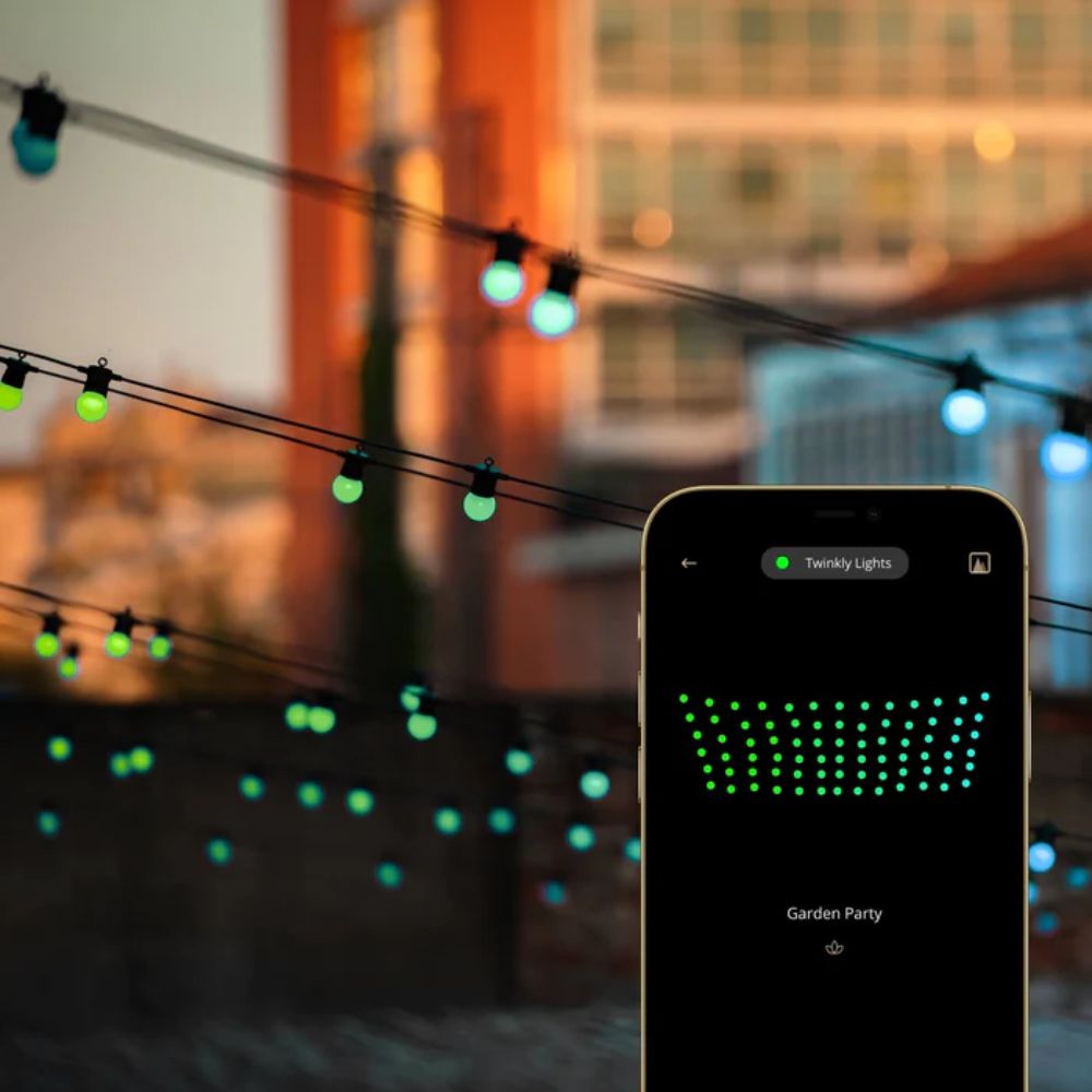 Aumenta la iluminación de tus decoraciones con las luces LED inteligentes Twinkly Festoon. Tanto si organizas fiestas de verano y asados, como si planeas una cena con amigos o te sientas a relajarte, crea el ambiente adecuado con Festoon. Disponibles en varias longitudes y con distintos números de bombillas, estos LEDs de primera calidad, controlados por una aplicación y direccionables, se han diseñado para ofrecer un brillo y una calidad de color extraordinarios en más de 16 millones de colores. Son perfectos para su uso tanto en interiores como en exteriores.